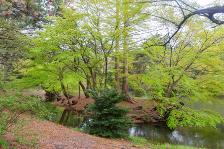 Overcast view of the landscape in Shinjuku Gyoen National Garden at Japan