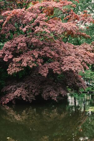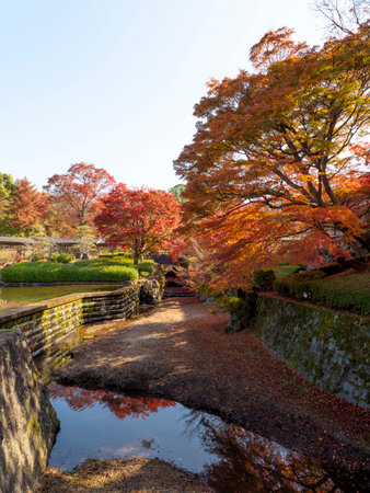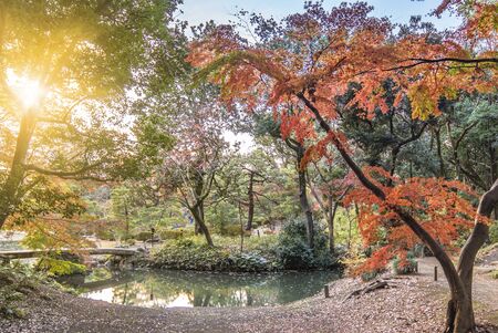 Autumn colors in Tokyo park. Koishikawa Korakuen Garden fall leaves.