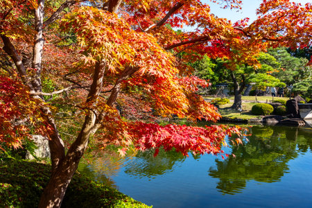 Japanese Autumn color of Korakuen garden in Okayama, Japan