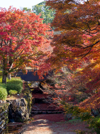 Dec 6 2024 Serene Japanese garden featuring vivid autumn tree foliage