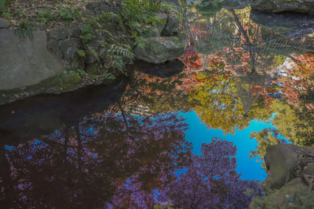 Beautiful landscapes of multicolor reflecting on surface in sunny day, Hirosaki city, Aomori Prefecture, Japan