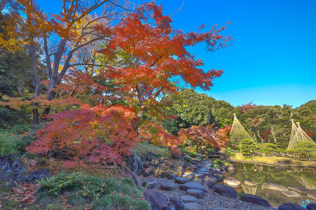 Bunkyo City,Tokyo,Japan on December6,2019:Beautiful Japanese Red Maple tree at Rikugien Garden in autumn.