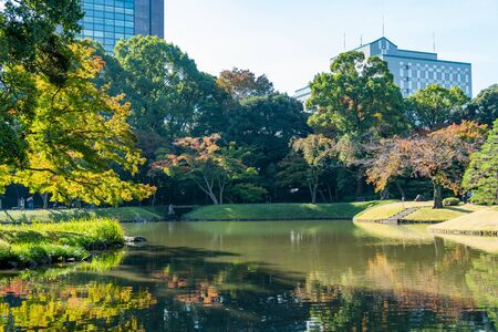 Autumn in the Shinjuku park, Tokyo, Japan. Copy space for text
