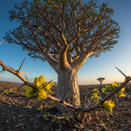 Dragon Blood Tree at Diksam Plateau in Socotra, Yemen, taken in November 2021, post processed using exposure bracketing