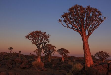 View of the Quivertree Forest at sunset in Namibia in Africa.
