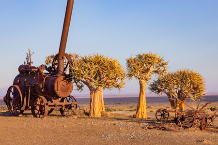 Vintage farming equipment abandoned in Karoo desert, South Africa