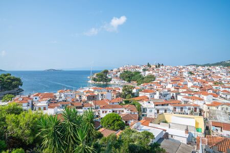 Amazing view of coastline of Skiathos Town, Sporades, Thessaly, Greece