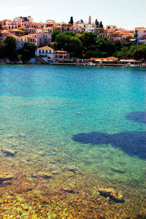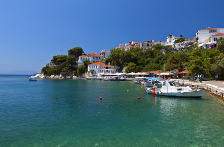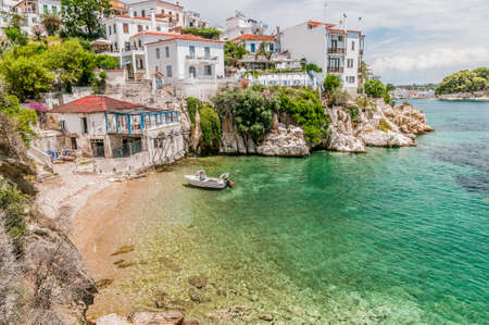 Blue sea and mediterranean houses on Skiathos island - Greece