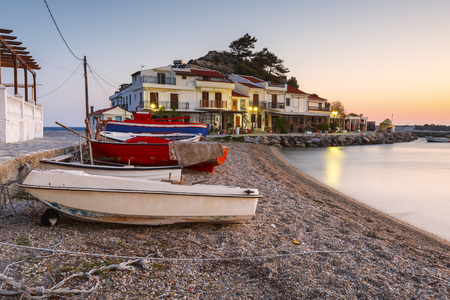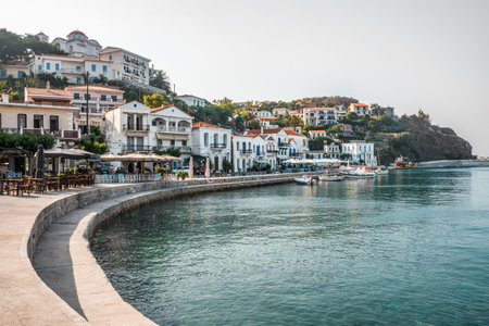 Traditional greek fishing villages. Beautiful Kokkari in Samos island. Popular tourist destination