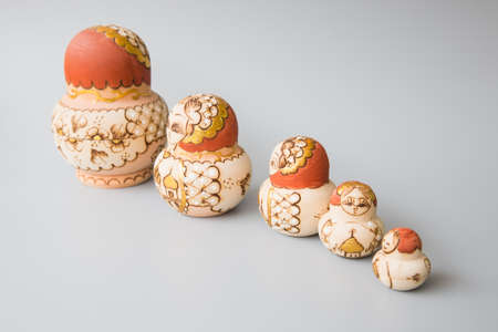 Group of nested dolls on white background
