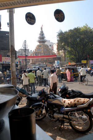 Traffic in the Hutatma Chowk near Ganesh temple in Pune state Maharashtra India 01 06 2007