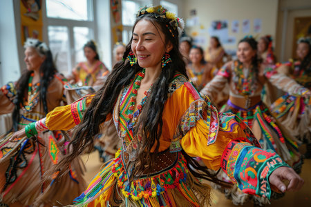 Colorful traditional festival celebrates cultures with young woman generated by artificial intelligence