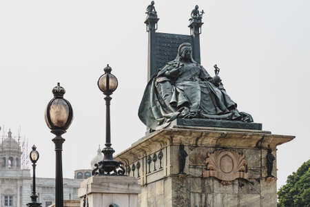 Queen Victoria statue with throne in front of VIctoria Memorial Hall in Kolkata, India