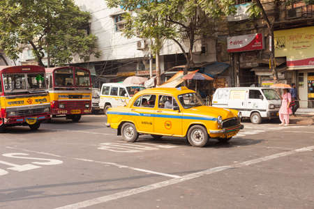KOLKATA, INDIA - 22 Oct 2016: A traditional Ambassador cab (taxi) on October 22, 2016 in Kolkata (Calcutta), India