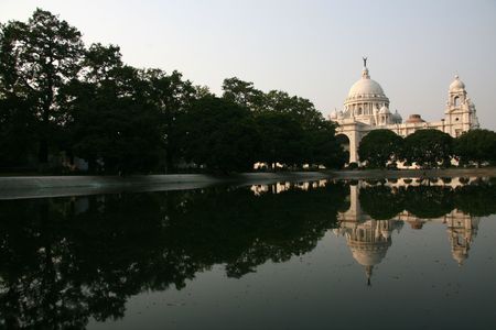 The Victoria Memorial in Kolkata, India with reflection