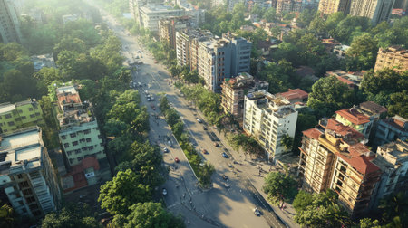 high angle view of dhaka city residential and financial buildings at sunny day