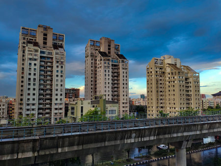 Kolkata, West Bengal/India - August 03 2019: A view of New Town, Rajarhat from a high rise, Kolkata, West Bengal, India