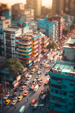 This captivating and colorful design immerses you in the bustling streets of Mumbai, one of India's most iconic cities, AI generated