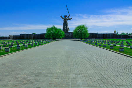 VOLGOGRAD, RUSSIA - July 09: 'The Motherland calls!' monument in Volgograd, Russia on July 09, 2013 in Volgograd, Russia. The monumental memorial was constructed between 1959 and 1967, and is crowned by a huge allegorical statue of the Motherland on the t