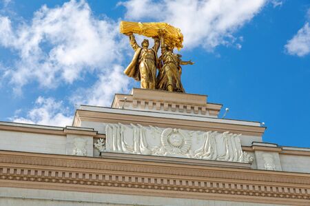 Moscow, Russia - July 8, 2019: Arch of the Main entrance to the territory of the All-Russian exhibition center (VDNKH)