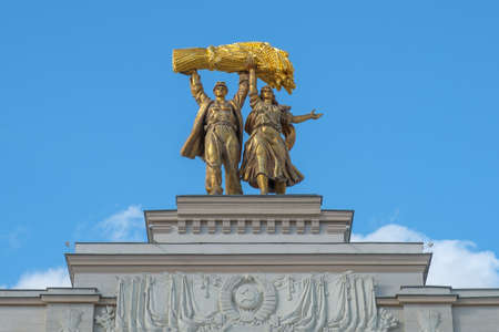 Famous soviet monument Rabochiy i Kolkhoznitsa (Worker and Kolkhoz Woman or Worker and Collective Farmer) of sculptor Vera Mukhina, Moscow, Russia. Made of in 1937