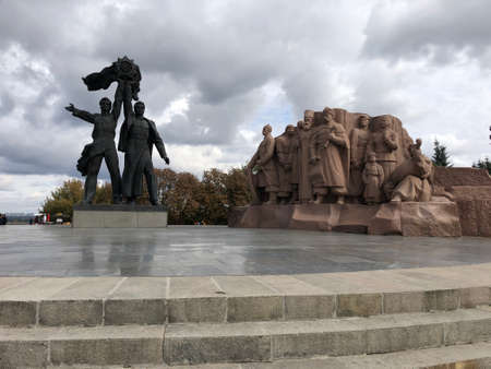 Sculptures around the friendship of the nations arch in Kiev, Ukraine