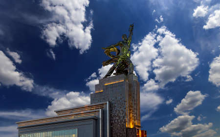 MOSCOW, RUSSIA - JUNE 29, 2013: The steel monument of Worker and Kolkhoz Woman is one of the main symbols of Soviet Union, located in Mira Avenue, on June 29 in Moscow