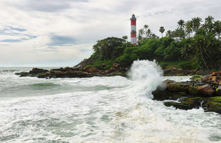 Lighthouse on the rocks near the ocean in Kovalam, Kerala, South India