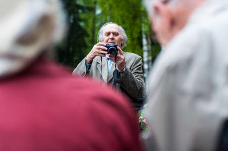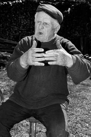 Lutsk, Volyn / Ukraine - April 03 2009: Senior man wearing cap posing on rural street