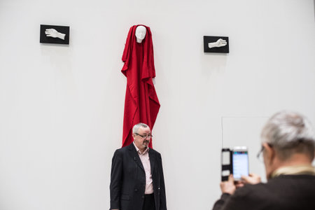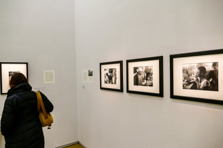 St. Petersburg, Russia - December 4, 2018: Spectators at an exhibition of photographs of the famous American photographer Annie Leibovitz in the State Hermitage Museum.