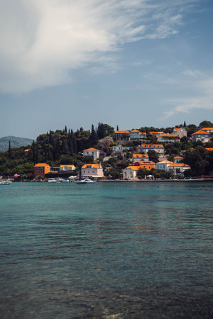 Orange roof houses in small Croatian town in summer near Dubrovnik