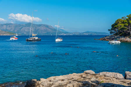 Rocky beach on Elaphites island Kolocep - Dubrovnik archipelago.