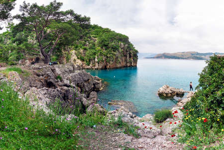 Picturesque Mediterranean seascape in Turkey, Asia. Colorful spring view of Pirate Bay on Gelidonya peninsula, District of Kumluca, Antalya Province. Traveling concept background.
