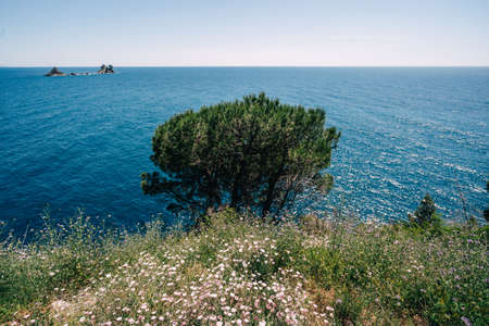 Amazing view of the Adriatic sea near Sv. Stefan, Montenegro. Travel destination in Montenegro.