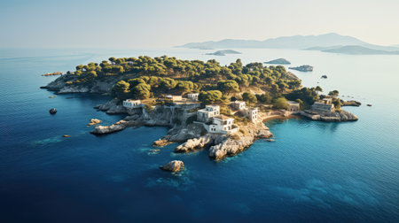 This captivating aerial image showcases a secluded island with lush greenery surrounded by serene turquoise waters, ideal for nature lovers and travel enthusiasts.