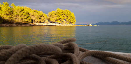A beautiful panorama taken from boat in Croatia Sea landscape during summer