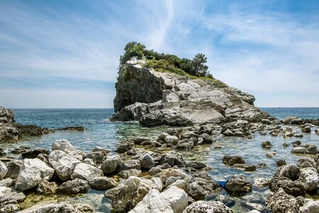 Beautiful view of the natural landscape with the sea and cliffs in Montenegro near Petrovac.