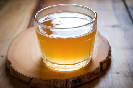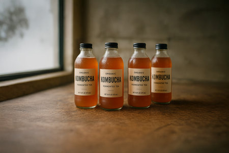 glass of fizzy, fermented kombucha on a tabletop, created with generative ai