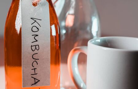 Homemade Fermented Raw Kombucha Tea Ready to Drink. Heathy probiotic drink - kombucha.
