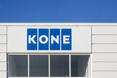 Aarhus, Denmark - October 14, 2018: Kone founded in 1910 in Finland, is an international engineering and service company and one of the largest manufacturers of elevators and escalators worldwide