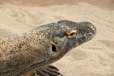 Head of Komodo Dragon (Varanus komodoensis), the largest lizard in the world.
