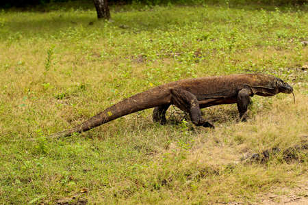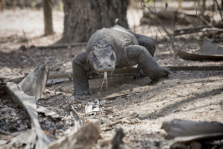 Komodo dragon wander with tongue hanging.