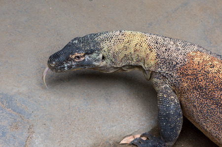 The Komodo dragon Varanus komodoensis with a tongue. Species of lizard found in the Indonesian islands.