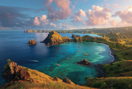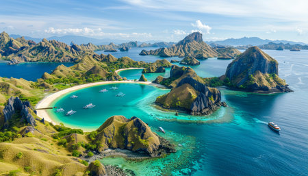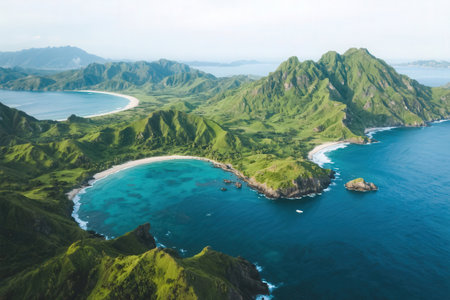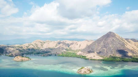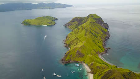Scenic tropical island aerial ocean view, Komodo National Park, Indonesia