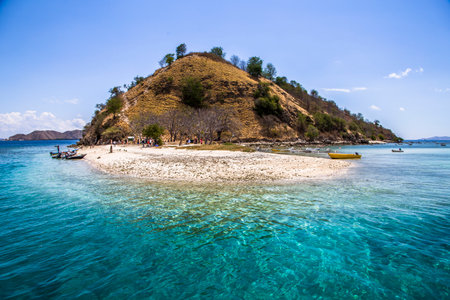 Little tropical island in pacific ocean turquoise water of Komodo National Park, Indonesia