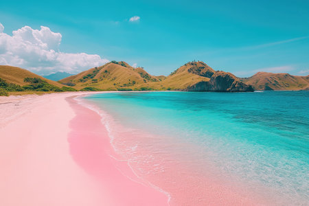 Panoramic view of Pink Beach, Komodo Nation Park, Flores Island, Indonedia.