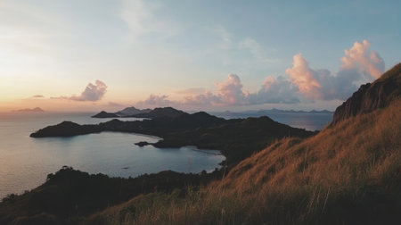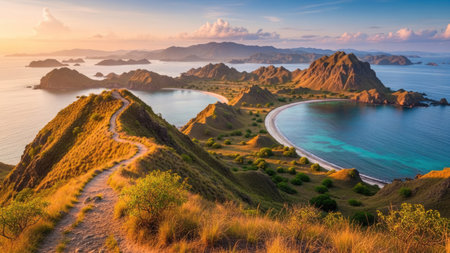 Panoramic view of majestic Padar Island during magnificent sunset. - ai