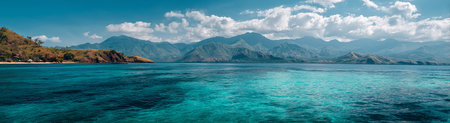 Scenic pacific ocean tropical island panorama, Komodo National Park, Indonesia
