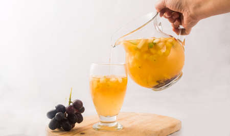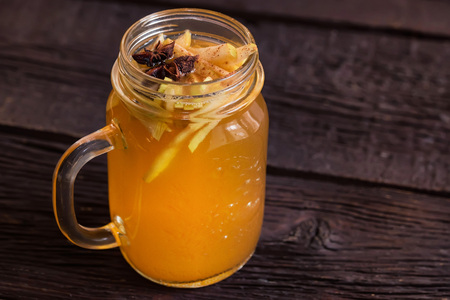 Infused Water in glass jar Fermented from herb, vegetable, and fruit.Having Enzyme and Probiotic. Good effects on physical health.Concept of healthy drinks that come from nature.