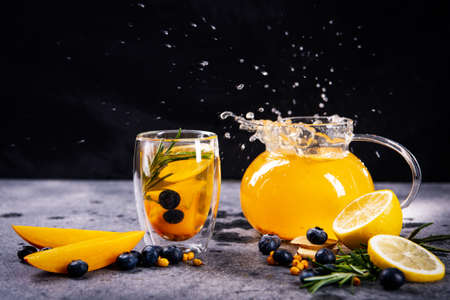 Healthy summer lemonade, citrus and berry cocktails, organic detox drink, antioxidant. Homemade refreshing drink in a bottle